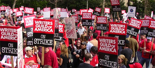 Odborářské stávky jsou v Hollywoodu poměrně standardním nástrojem k vyjednání lepších podmínek, ale o většině z nich nemá koncový uživatel, tj. divák, ani páru, protože se řeší za zavřenými dveřmi, a málokdy dojde na promenádu s letáky. V listopadu roku 2007 to bylo jinak a scenáristé vyšli do ulic. Na psací stroje se nakonec prášilo celkem tři měsíce. Proč? Na vině byl mj. i internet. Scenáristická unie (WGA) vyjednává s producenty nové podmínky každé tři roky. Některé části smlouvy o finančních kompenzacích ale jaksi nereflektovaly aktuální situaci, např. kompenzace za prodané domácí videonosiče byla stále nastavena podle prodejů a pořizovacích nákladů VHS v roce 1985, což jak sami uznáte v době, kdy DVD slavilo pomyslný vrchol prodejů, nebylo úplně košer. Studiím se taktéž nechtělo platit extra peníze za distribuci prostřednictvím tzv. nových médií (=internet). To už si unie nenechala líbit a poslala svých dvanáct tisíc členů do ulic.