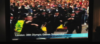 Roztomilý detail. Kvůli blížící se katastrofě je přerušena olympiáda v Londýně. To ovšem naznačuje, že film pokryje mnohem širší časové pásmo. Olympiáda se měla konat na přelomu července a srpna, takže se první příznaky blížícího se armageddonu objeví mnohem dřív než v prosinci. Vysvětlovalo by to i způsob, jakým se lidstvo na běsnění živlů připraví (viz níže).