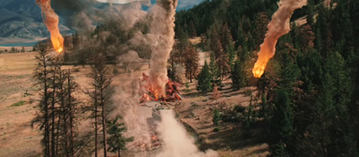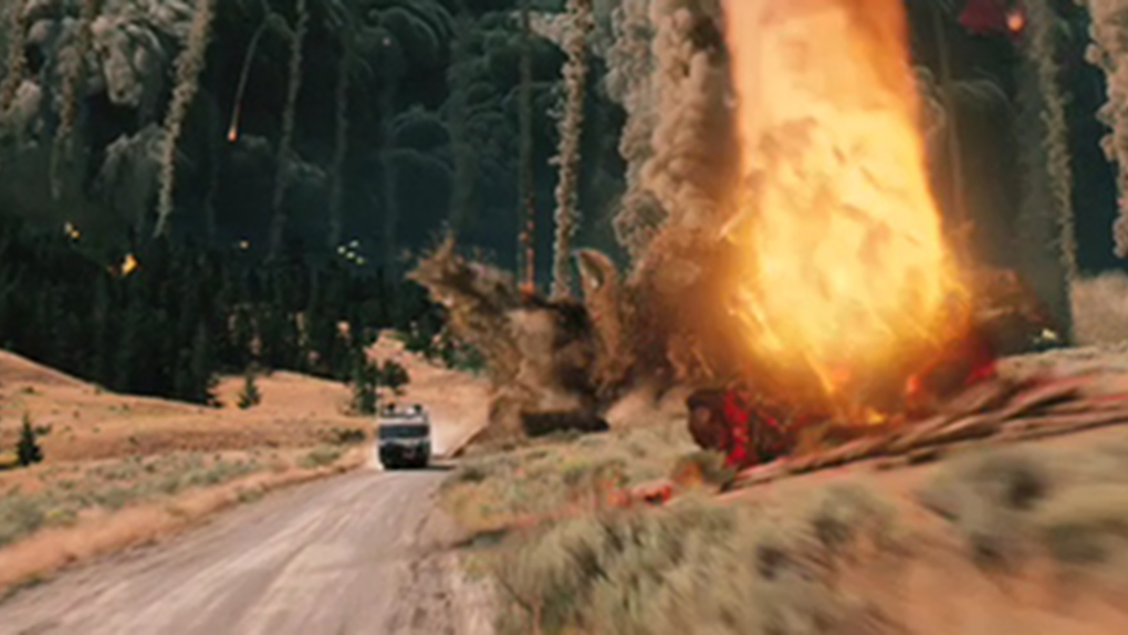 Obří šutry obalené žhavou lávou, které míří na auto Johna Cusacka pochází z výbuchu supersopky v Yellowstone. Trocha historických faktů: Když vybuchla v roce 1980 hora Svaté Heleny, vypařila exploze několik okolních ledovců a srovnala se zemí (nadzvukovou rychlostí) třicet kilometrů do všech směrů. Hmota skály a žhavého magmatu měla i dva týdny po usazení teplotu přes 400 stupňů a následky pocítili i obyvatelé stovky kilometrů vzdálených míst. Škody se odhadují asi na tři miliardy amerických dolarů. Tak... a teď si to vynásobte 2500x. Upřímně řečeno, ty záběry z traileru ještě vypadají hodně krotce. Buď je Cusack daleko nebo si Yellowstone jenom tak odplivnul.