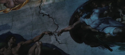 Mayský kalendář v roce 2012 dovrší cyklus stvoření. Michelangelova malba v Sixtinské kapli má název Adamovo stvoření. Emmerich nejdřív prasklinou přeruší pouto mezi Adamem a bohem, čímž demonstruje, že někdo tam nahoře na své dětičky zanevřel. Kaple se zřítí jen o pár vteřin později, bez ohledu na modlitby všech přítomných.