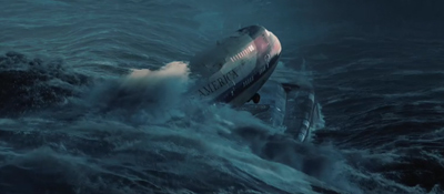 Což by ovšem mohlo znamenat, že prezident to na palubu nestihne a zhyne na palubě Air Force One. Nejslavnější letecký speciál v popředí, v pozadí jedna z ponorek. Dost možná jde jen o opuštěné letadlo, které se žene na potápivší se Archu. I v druhém případě to však může znamenat poškození trupu, nedobrovolné koupání a další komplikace. Bylo by ostatně naivní myslet si, že všechno půjde jako na drátkách.
