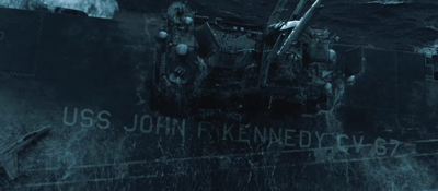 Loď je dlouhá 321 metrů, váží (nenaložená) 60 tisíc tun a momentálně kotví ve Filadelfii, takže není úplně nemožné, že by to k Bílému domu "dotáhla". Ze služby byla propuštěna v roce 2007, takže by na ní teoreticky neměly parkovat žádné stíhačky, ale to je samozřejmě detail. Svou vahou a rozměry by Bílý dům rozdrtila spolehlivě. Evidentně se v něm svítí, což nenaznačuje nic dobrého.