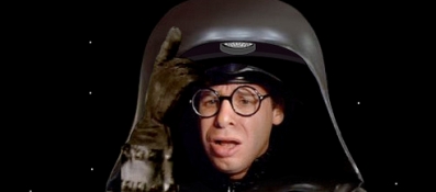 Je to jeden z nejznámějších filmových záporáků všech dob. Jen v trochu jiném podání. Říkají mu Dark Helmet (v českém překladu trochu joudoidní Tmavá Helma), a pokud ho nechcete naštvat, nikdy se neposmívejte jeho velikosti. Jeho vaderovská helma by, když by na to přišlo, mohla poskytnout prostory pro menší ukrajinskou ubytovnu - v rámci Spaceballs aka Vesmírných těles je v ní ale prostor jen pro zloducha Helmeta a jeho ego. Vesmírná tělesa spadají mezi proslulejší parodie Mela Brookse, i přes to mají podle mého jen pár světlých okamžiků. Vystupovaní Ricka Moranise v obří helmě mezi ně bez debat patří, a i když je spíš k smíchu, nemůžete mu upřít fakt, že je to zatraceně stylový záporák.