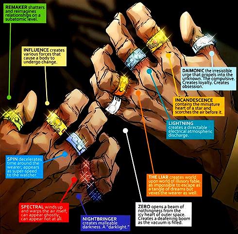 Jeho další propriety už jsou ale mnohem známější, zejména prsteny, které z něj dělají jednu z nejmocnějších bytostí na Zemi. Možná jsme slyšeli o Halu Jordanovi, nálezci zeleného prstenu moci, ze kterého se stal škrabošku vyznávající Green Lantern. Proti Mandarinovi je to chudáček, protože tomu jich havarovaná vesmírná loď nadělila rovnou deset. Každý umí něco jiného a nad každým si v Marvelu musí lámat hlavu, protože vrazit je do filmu není legrace. Zvlášť když se snažíte o to, aby měl chlápek z masa a kostí šanci proti mágovi s mimozemskou technologií na prstech.