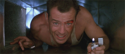 John McClane: Přísahám, že už nikdy v životě nepolezu na tak vysokej barák. Bože, nenech mě umřít.