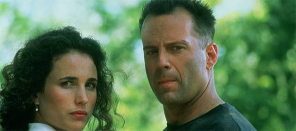 Jeden z největších propadáků a role, na kterou by Willis nejradši zapomněl. V kolika si musel zahrát filmech, aby splatil producentské dluhy z Hudsona Hawka, kterého pomáhal napsat. A pro mě je to přitom zábavné guilty pleasure. Máme tu fakt ujetý páreček záporáků, psa s chronickou zálibou v mužských rozkrocích a zápletku s vatikánskou tajnou službou, ze které určitě Dan Brown při psaní Andělů a démonů ledacos obšlehnul. Je pravda, že návaznost jednotlivých skečů překonává v absurditě i mistrovství světa ve hře na schovávanou z Létajícího Cirkusu, ale mě se to kdysi hrozně líbilo. Bylo mi dvanáct. Od té doby se na to bojím podívat znovu. Tančící, zpívající a raketometem disponující Willis stojí za pokus. Velká škoda, že mu to tu kazí jak parťák, tak akční jeptiška Andie MacDowell. Castingového agenta zpětně popravit, ale Willise nezatracovat! (imf)