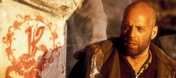 Když si Terry Gilliam, respektovaný UMĚLEC a režisér klasik jako Brazil nebo Král rybář, vybral do hlavní role své sofistikované sci-fi toho vtipálka ze Smrtonosné pasti, musel se kdekdo vylekat. Bruce Willis se ale nechal uvázat na vodítko, respektoval Gilliamem sestavený seznam grimas, které nesmí použít, a dopracoval se k parádní roli v dokonalém filmu. Jeho umírněný výraz muže na pomezí šílenství a deliria, který není doma v současnosti, v minulosti ani v budoucnosti a který má štěstí na dosah, a přesto mu na rameno ťuká vidina tragického osudu celé planety... ten zastřený projev prostě nabíjí Gilliamův opus neodolatelnou tesknotou.