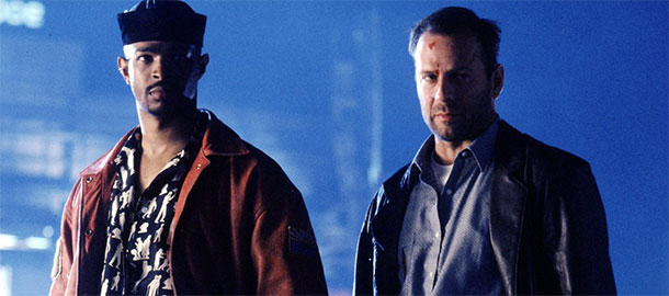 Druhý "McClane ve vesmíru" a tentokrát s bessonovskou rozšafností. Evropské Star Wars, to je i díky Willisovi hodně zavádějící příměr. Korben Dallas tu coby blonďatý taxikář a spasitel světů sice nepřehlédnutelně ruluje, ale Besson zabydlel svůj vesmír snad až příliš pubertálními postavičkami - rusovlasá Milla objevující výhody multipasu a kuřete, parádně švihnutý záporák Garyho Oldmana a verbálně průjmovitý Chris Tucker s účesy, na kterých nejlepší pařížská kadeřnictví strávila týden času. Ne, to jsem si vymyslel, ale u Pátého elementu platí, že ať řeknu cokoliv, bude to pravda. Takhle opulentní produkci Francie a vlastně ani Evropa od těch dob nezažila a angažmá Willise celou tu trikovou extravaganci jenom ozdobilo. Tím ale nemyslíme takovou tu marcipánovou růžičku na dortu, co znechuceně předáte dětem. Tohle je blonďatý hřeb, bez kterého bychom si ten film pouštěli o poznání méně často. Ukázka ostatně mluví za vše: (imf)