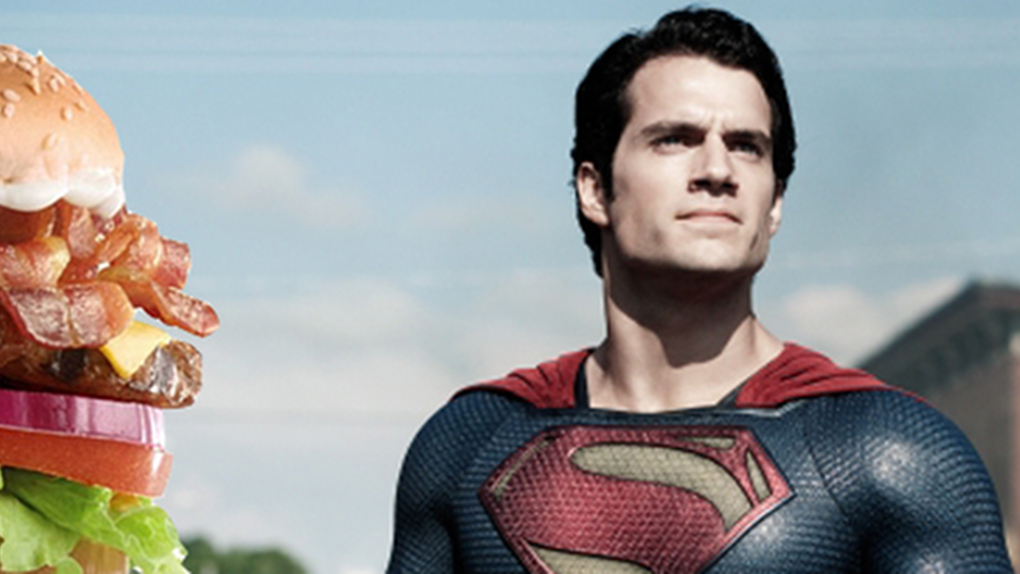 Clark samozřejmě potřebuje i telefon a Nokie se s novou Lumií 925 snaží dokázat, že je pořád ještě super. Hlavně tedy spoléhá na čínský trh, protože v Evropě a Americe už dávno frčí jiné značky. Warneři se opravdu činili, takže Henryho Cavilla najdeme na všem od křupek, přes čokolády a gumové pendreky až po exkluzivní burger od Carl´s Jr. Jmenuje se Super Bacon Cheeseburger a nabízí trojnásobnou porci slaniny pro dny s vyšším pracovním zápalem. Jak ostatně naznačuje reklama, kterou natočil sám Snyder.