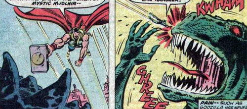 Gigantický ještěr tak na dlouhých devět let opustil japonské ostrovy a vydal se dobývat Ameriku. Stal se hvězdou animovaného seriálu z produkce Hanna-Barbera a v roce 1977 se poprvé objevil na stránkách západního komiksu, když si našel cestu do marvelovského univerza, kde odolával nejen S.H.I.E.L.D.u a jeho nejmodernější technologii, ale i týmu Fantastické čtyřky či samotným Avengers. Od roku 1987 se komiksové příběhy Godzilly přesunuly pod hlavičkou Dark Horse a o 13 let později koupilo práva na všechny monstra IDW, jejichž aktuální Godzilla: Rulers of Earth patří k tomu vůbec nejlepšímu, co tohle nakladatelství v současnosti nabízí.