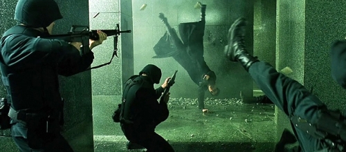 1. První projekci Matrixu jsem absolvoval s kamarády „od fochu“ - kameramanem, ostřičem a střihačkou. I proto jsem si hodně všímal technických aspektů filmu, které na mě ale velký dojem neudělaly. Tušil jsem, že jsou v něčem nové, ale připadaly mi samoúčelné. Divil jsem se, proč je kolem Matrixu takové haló: připadal mi jako instantní mix pop-new-ageových klišé, plytká exhibice bez děje a přesahu, nic, co bych neviděl už dřív v lepším podání.