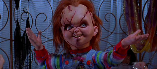 Kdo jiný by měl sakra být na prvním místě? Chuckie je legenda moderního hororu, podobně jako Jason Voorhees, Freddie Krueger nebo Michael Myers. Původně to byla jen obyčejná hračka, ale těsně před smrtí do ni přenesl svou duši sériový vrah Charles Lee Ray. Na první pohled jde o celkem bezbrannou malou mrchu a i když se naštve, vypadá jako něco, co by stačilo prokopnout oknem a bude klid. Ale opak je pravdou. Tahle malá svině je jako Terminátor. Jen zákeřnější a s mnohem černějším smyslem pro humor. Na svém kontě má Chuckie šest filmů a na příští rok chystá sedmý. Nafasoval přítelkyni i děti, přežil zásah kulkou do srdce, roztavení, pád do větráku i rozsekání sekyrou. A co vlastně chce? Krom toho, že rád zabíjí a souloží s jinými panenkami, by se rád zase stal člověkem. Brad Dourif, mimochodem Gríma Červivec z Pána prstenů, si tuhle hororovou ikonu zahrál v její lidské podobě a panence poskytl hlas. Scenárista Don Mancini se při její tvorbě inspiroval sérií hraček Cabbage Patch Kids. Premiéra prvního dílu se setkala se zájmem nejen diváků, ale i party lidí, kteří byli přesvědčeni, že film bude v dětech vzbuzovat násilí. Částečně měli pravdu, třetí díl prý totiž sloužil jako inspirace u dvou vražd, které se staly v Británii na začátku devadesátých let.