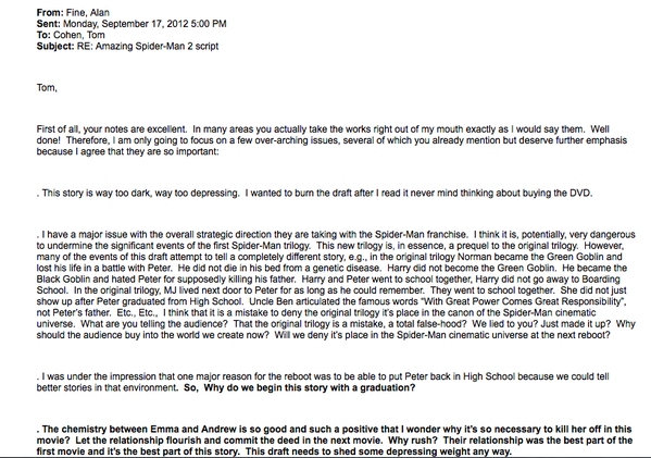 Mail od Prezidenta Marvelu Alana Finea o Amazing Spider-Manovi 2 (17. září 2012)