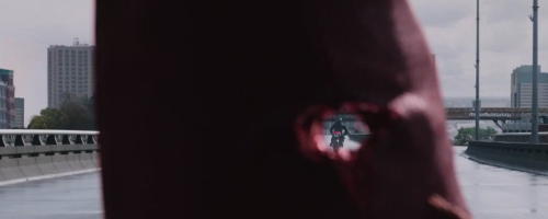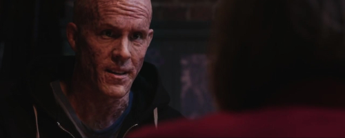 Proč nosí Deadpool kuklu? Protože mu rakovina žere obličej a jeho léčící faktor se zrovna neučil od plastických chirurgů, v některých comicsech tedy vypadá dost nechutně. Miller se to samozřejmě snažil zreplikovat, zároveň ale nechtěl mít na plátně rozšmelcovanou zombie. Výsledek je... ok. Hlavně ale slouží jako terč očividně plodné improvizace.