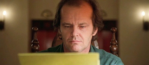 Vzpomínáte si na větu „All work and no play makes Jack a dull boy“? Ano, to je ta věta, kterou objevila zděšená žena hlavního protagonisty ve filmu. Pravděpodobně pochází z pera Jamese Joyce a objevila se předtím například ve filmu Most přes řeku Kwai. Zpátky k samotnému filmu. Divné to celé začíná být, když vám řeknu, že ve scénáři byla ta věta napsaná na 500 stránkách a na stejném počtu stránek byla opravdu napsaná i ve filmu. Jo, na plátně. Podívejte se na ten film znovu. Ještě divnější to začne být, když vám řeknu, že Kubrick tuto práci nezadal žádnému asistentovi a sám to měl na těch 500 stran napsat. Dobrá, psací stroje v té době měly už nějakou zabudovanou paměť a mohly reprodukovat. Nejdivnější to tedy začne být, když vám řeknu, že v těch 500 stránkách se nepravidelně objevovaly chyby a to už v té době opravdu nikdo nedovedl naprogramovat.