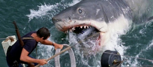 Povídání o Čelistech zakončíme ještě jednou rychlou historkou. Na začátku produkce Spielberga navštívili kamarádi Martin Scorsese, George Lucas a John Millius. Lucase fascinoval Bruce. V jednu chvíli se sehnul a strčil hlavu do tlamy žraloka. Steven a Martin se nenápadně přesunuli k ovládacímu pultu a jen tak z legrace spustili čelisti dolů. Lucas vykřikl, ale nic se mu nestalo. Problémem bylo, že došlo k seknutí „systému“. Čelisti se nedařilo otevřít a George byl chycen v pasti. Ještě že jim pak fungovaly ty hydraulické kleště.
