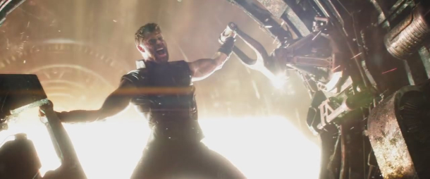 Ať už to s Lokim dopadne jakkoliv, Thor Thanosovi unikne a doslova se srazí se Strážci Galaxie. Jeho bezvládné tělo totiž skončí na předním skle Milana, odkud vesmírní desperáti (i přes Rocketovy protesty) Thora vezmou do lodi a probudí ho.