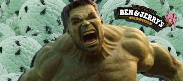 Všimněte si mimochodem ve scéně, kde Hulk jí zmrzlinu, obalu toho obřího kýble. Je to Hulkova vlastní příchuť Hulk-a-Hulk-a-Burning-Fudge. Těžko říct, co v ní vlastně je, ale Ben & Jerry´s proslul i v reálu výrobou příchutí na míru celebrit, takže to vlastně není překvapení. Ostatně i Tony Stark měl v Infinity War vlastní zmrzlinu, ačkoliv byla podle Strange nic moc a lepila se na patro.
