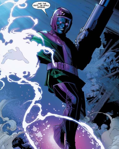 Přesně tak, zbytek Avengers (a všechny ostatní postavy) čeká setkání s mnoha zlými Variantami Richar… Kanga Dobyvatele, jenž si do svého impéria vždycky rád přidá jednu Zemi navíc. Ačkoliv to teď bude znít hodně divně, Kang nemá žádné superschopnosti. Za všechny své úspěchy vděčí vysokému intelektu a mocné technologii z budoucnosti, díky níž má po ruce nejen spoustu nebezpečných zbraní, ale především superoblek s modrým hledím (jen počkejte, až jistým lidem dojde, že to je na papíře běloch!).