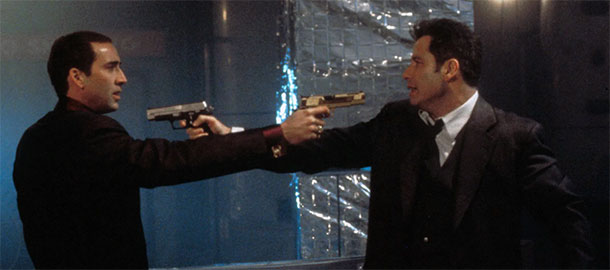 Tentokrát si pustíme jeho největší americkou pecku Tváří v tvář, ve které si Nicolas Cage zahrál šíleného vraždícího magora, jemuž jde po krku John Travolta. Jenže tohle rozložení sil dlouho nevydrží, protože kvůli tikající bombě si oba dva s pomocí experimentální medicíny vymění ksichty a… no prostě se to pak začne střílet, budou létat wooovské holubice, dojde na mexickou plichtu a celé to je našláplé od začátku do konce.