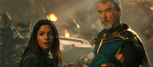 Ale musím být fér a na druhou stranu i mírně chválit. Design superhrdinů i záporáka mě bavil, bylo to přehnané a křiklavé, ale do těch zaprášených kulis fiktivního Egypta či co to mělo být to sedělo. Pierce Brosnan by býval skvělý, kdyby mu ubraly na patetičnosti, takhle zůstal sympaťákem v blbé roli, dva mlaďoši Atom Smasher a... sakra... jak se jen... Vortex? Cyclone! Jo, ti byli docela vtipní, k ničemu, ale vtipní. Johnsona chválit nehodlám, není za co. No a pobavily mě asi tři nebo čtyři hlášky spolu se dvěma – sice ohranými, ale pořád fajn – songy. Zkrátka film pro děcka, co se snaží tvářit dospěle a vážně. Mě jen udivuje (a taky trochu trápí), že touhle cestou v roce 2022 někomu vůbec stojí za to jít.