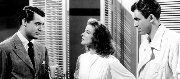 Miluju tuhle story na divadle, protože je pozvánkou pro ty nejlepší herce. Kdo by se nechtěl handrkovat o hezkou holku s nejprořízlejší pusou na světě? Grant vs. Stewart je soubojem v ultimátní váhové kategorii o srdce Katharine Hepburn. Cukorova "převleková" komedie možná není tak šílená jako jiné Grantovy pecky, ale Cary tu zas musí čelit solidní konkurenci, protože Stewart je neodolatelný s kloboukem i bez něj a Katharine Hepburn je zkrátka bohyně, takže celkem rychle pochopíte, proč jí všichni padají k nohám. Tempo je zběsilé, dialogy by se měly tesat a celé to směřuje k očekávatelné, leč přesto dojemné pointě. Že je to příliš jednoduché? No právě... jak může podobně elementární zápletka rozhýbat bránici i srdeční chlopně a ještě ve vás zažehne touhu psát. Ideálně podobně neprůstřelné slovní výměny, ale někteří z nás se holt spokojí i s články o dávno mrtvých hercích. (imf)
