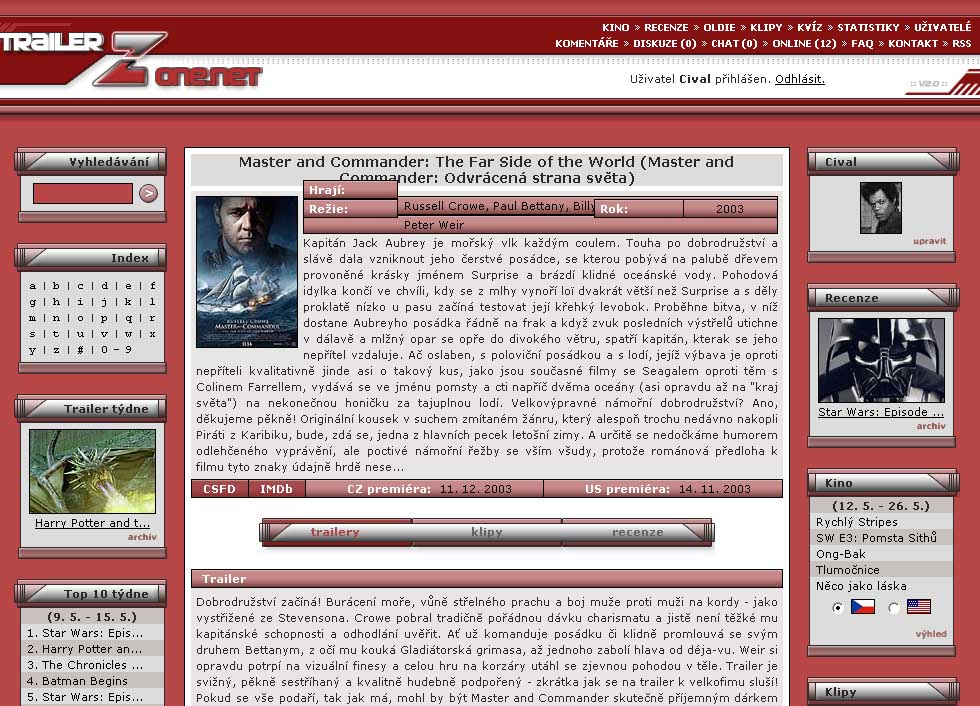 - Sestavovat si žebříčky oblíbených filmů a trailerů