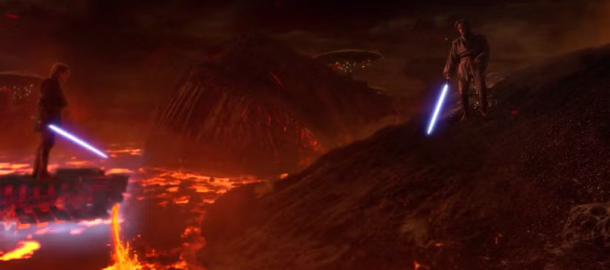 Závěrečná hodina, jakkoliv ne vždy psychologicky uspokojivá, je pak vede k dechberoucímu finále. Vulkanický duel „bratrů“ Anakina a Obi-Wana, jako kdyby zasazený do obrazu Pandemonium Johna Martina, zpodobňující hlavní město pekla, navazuje na grandiózní, operní patos a tragiku.
