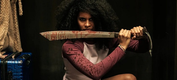 O šestku se pere nesourodá dvojice. Začnu chváleným krvákem Najdou si tě, kde agilní Zazie Beetz vzala do ruky sekeru, meč a další sečné zbraně, jenom aby rozpoutala řádné peklo. Svižný akčňák s prvky brakového hororu sbírá chválu, kam se podívám, a tak mě mrzí, že tržby v Americe ani po dvou víkendech ještě nepřelezly slabounkých devět míčů.